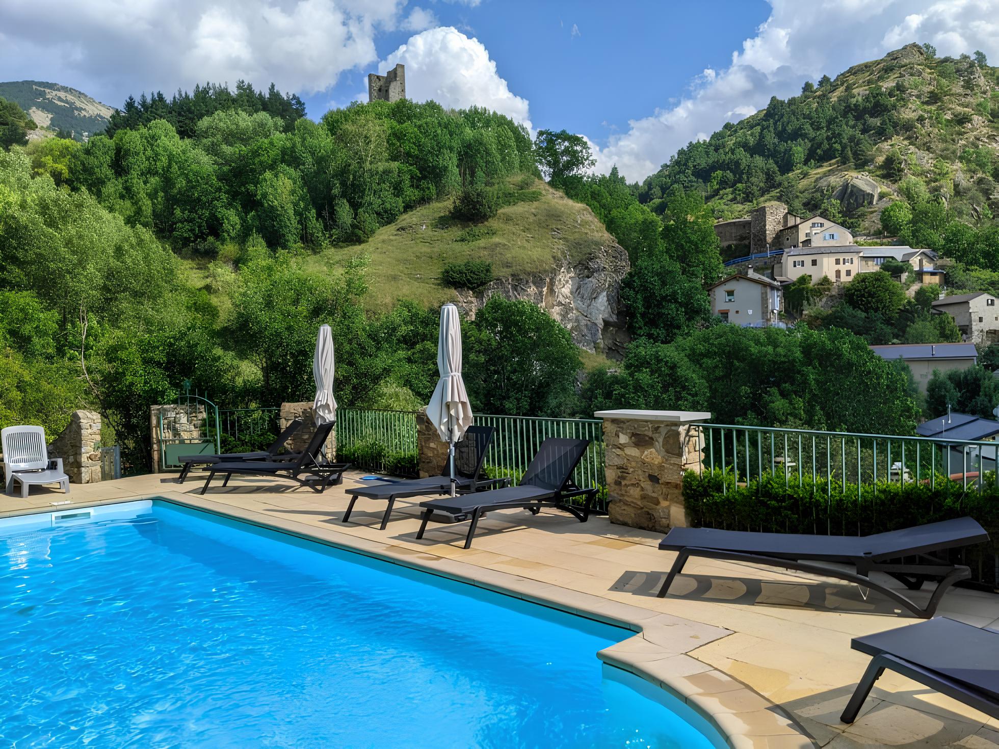 La piscine de l’Atalaya est accrochée au rocher au pied de la tour médiévale. Sa terrasse orientée plein Sud surplombe tout le village. L’ensoleillement du matin et du soir offre des belles variations de couleur dans le ciel. Vous pourrez vous baigner au milieu des montagnes ou simplement prendre le soleil sur un transat…